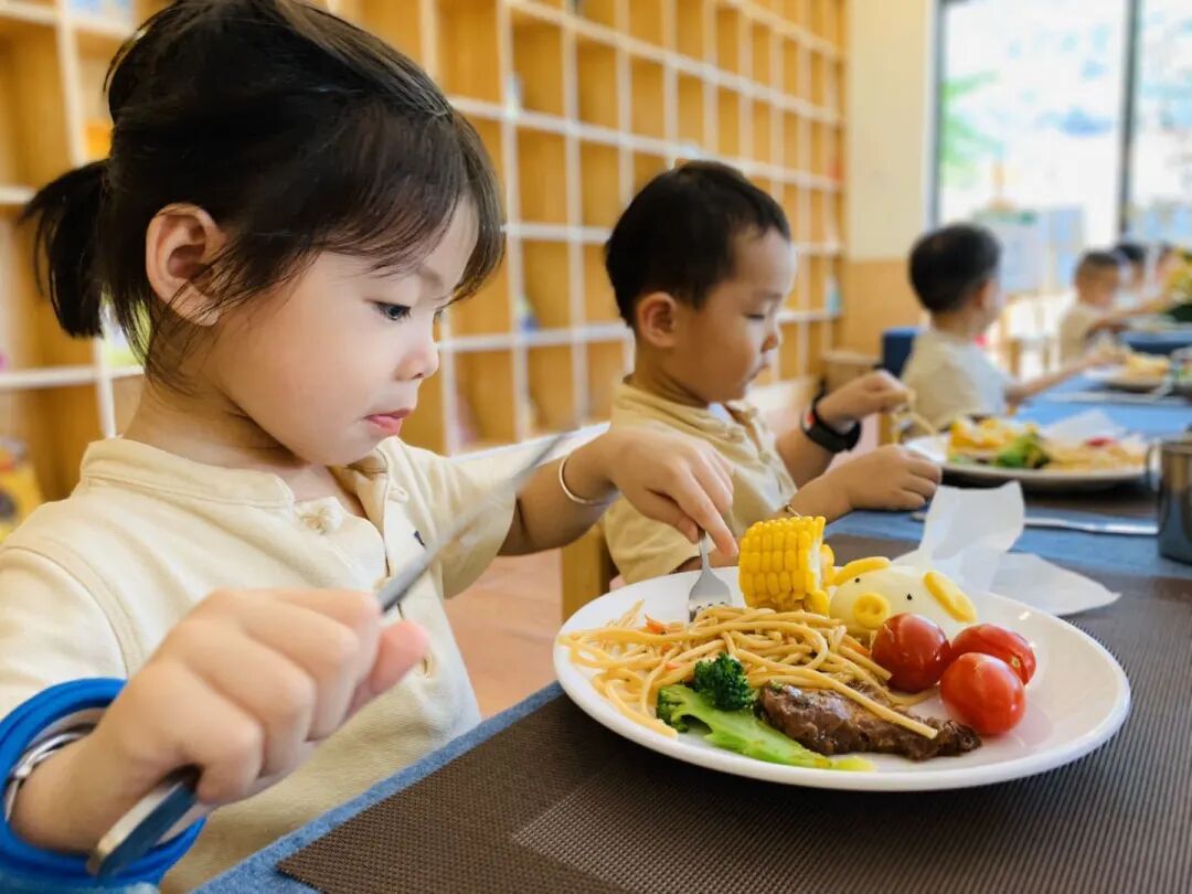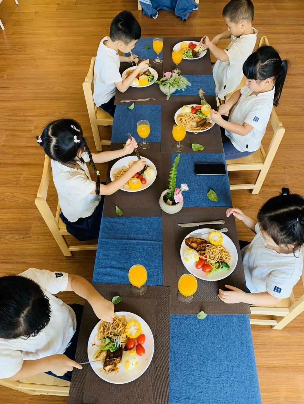 为了适应这种多元化的交流,促进相关的知识、实践、文化、观念及品质的形成,从而在成长过程中培养除健康的饮食习惯,正确的饮食观念,就餐礼仪以外,还有儿童健全的身心和人格,并能通过食育活动积极传承传统的饮食文化。6月4日上午,懿德嘉行幼儿园的孩子们一起学习西餐礼仪,品尝美味的西餐,发现中西方文化之异同,共度了一段好玩又有趣的午餐时光。